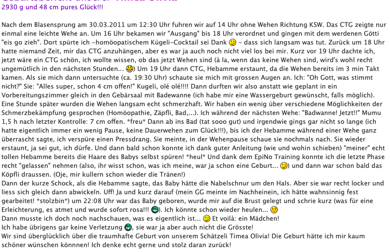 6200901 | Geburt 3.650g , 49cm , 37cm KU Das war ein | einmalige | Erlebnis und obwohl das schmerzhaft war will ich es nicht |