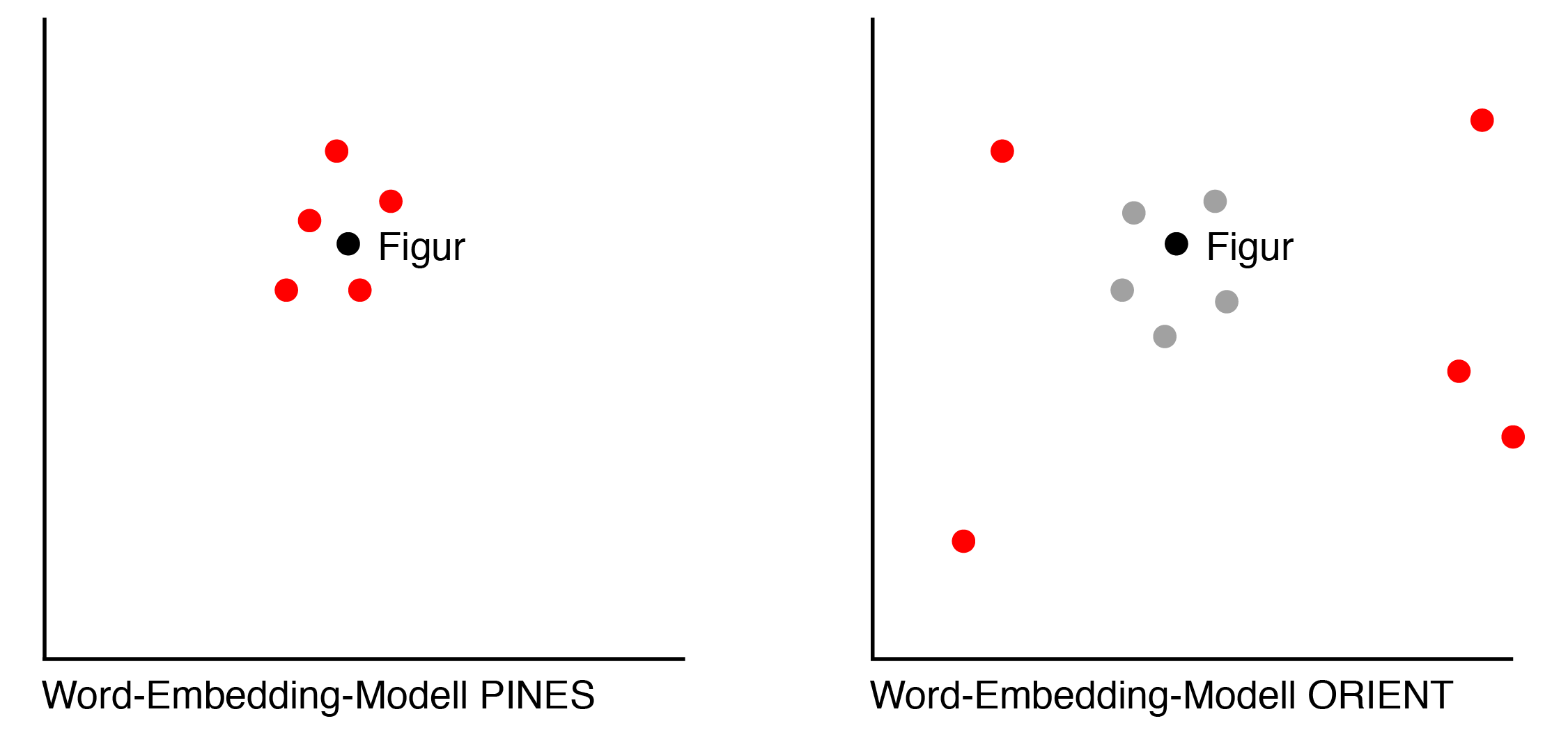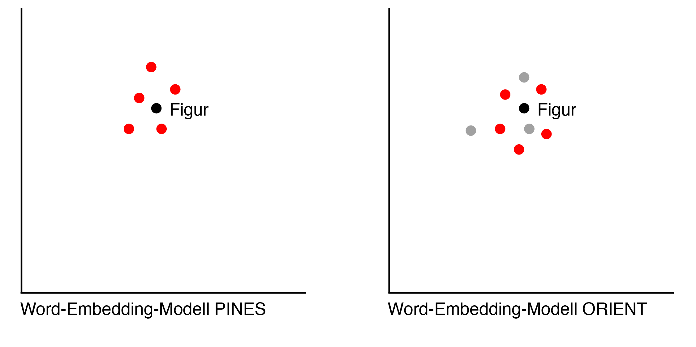 Ausdruck X und seine 100 Next Neighbours in den Modellen ORIENT und PINES:
